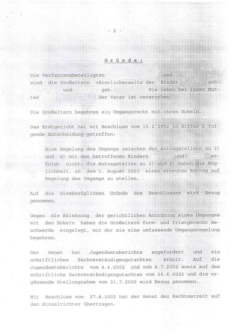 dem Beschluss "Die Beschwerde der Großeltern ... wird zurückgewiesen..."
